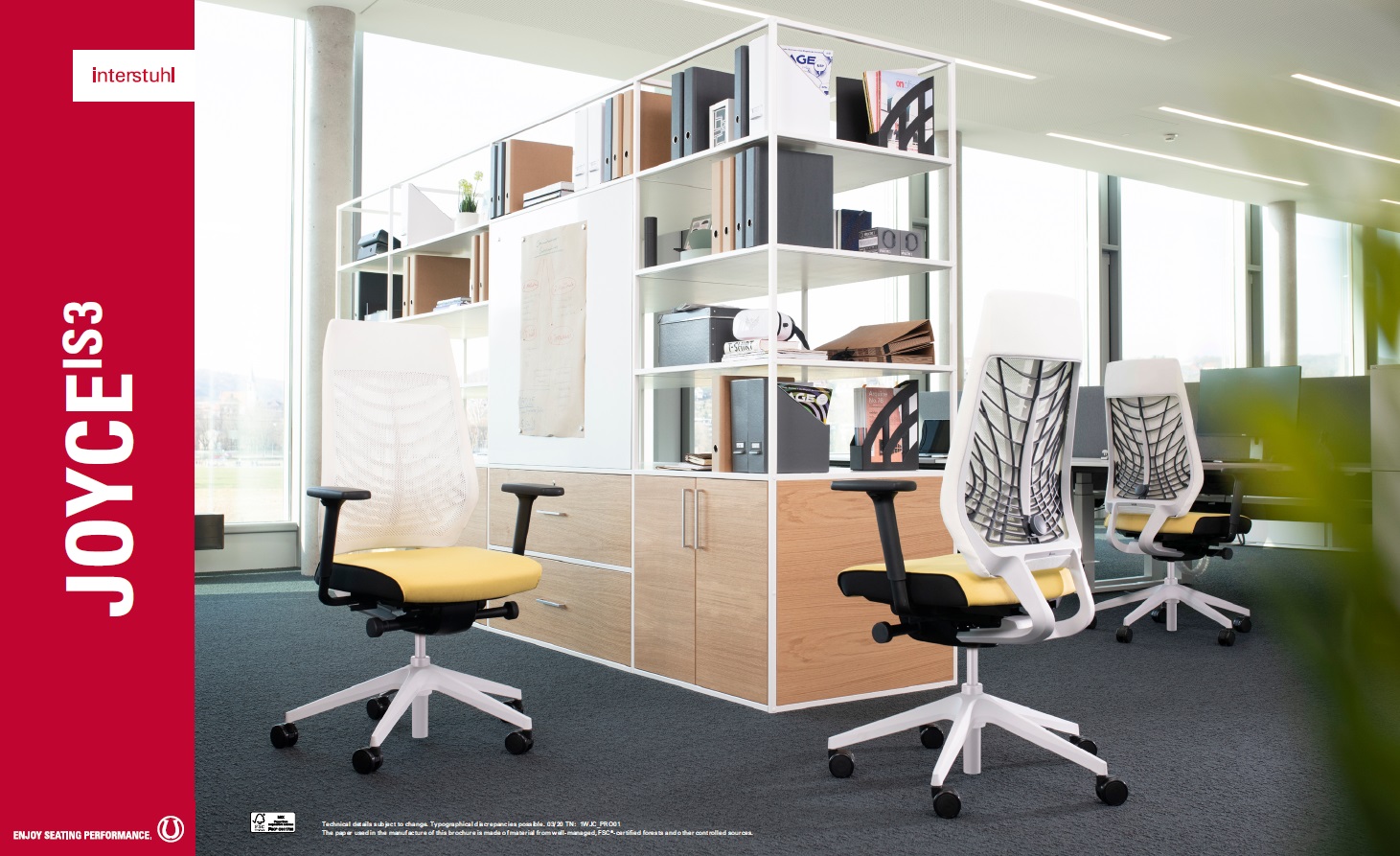 Ob im Großraum- oder im Einzelbüro: Wenn es darum geht, konzentrierte Arbeitsprozesse zu unterstützen, fokussiert sich JOYCEIS3 ganz auf den Menschen. Der flexible Drehstuhl stellt die individuellen Bedürfnisse und Wünsche seines Nutzers in den Mittelpunkt. Er bietet umfangreiche Möglichkeiten zur passgenauen Zusammenstellung von Rückenvarianten, Polstern und Farbausführungen.