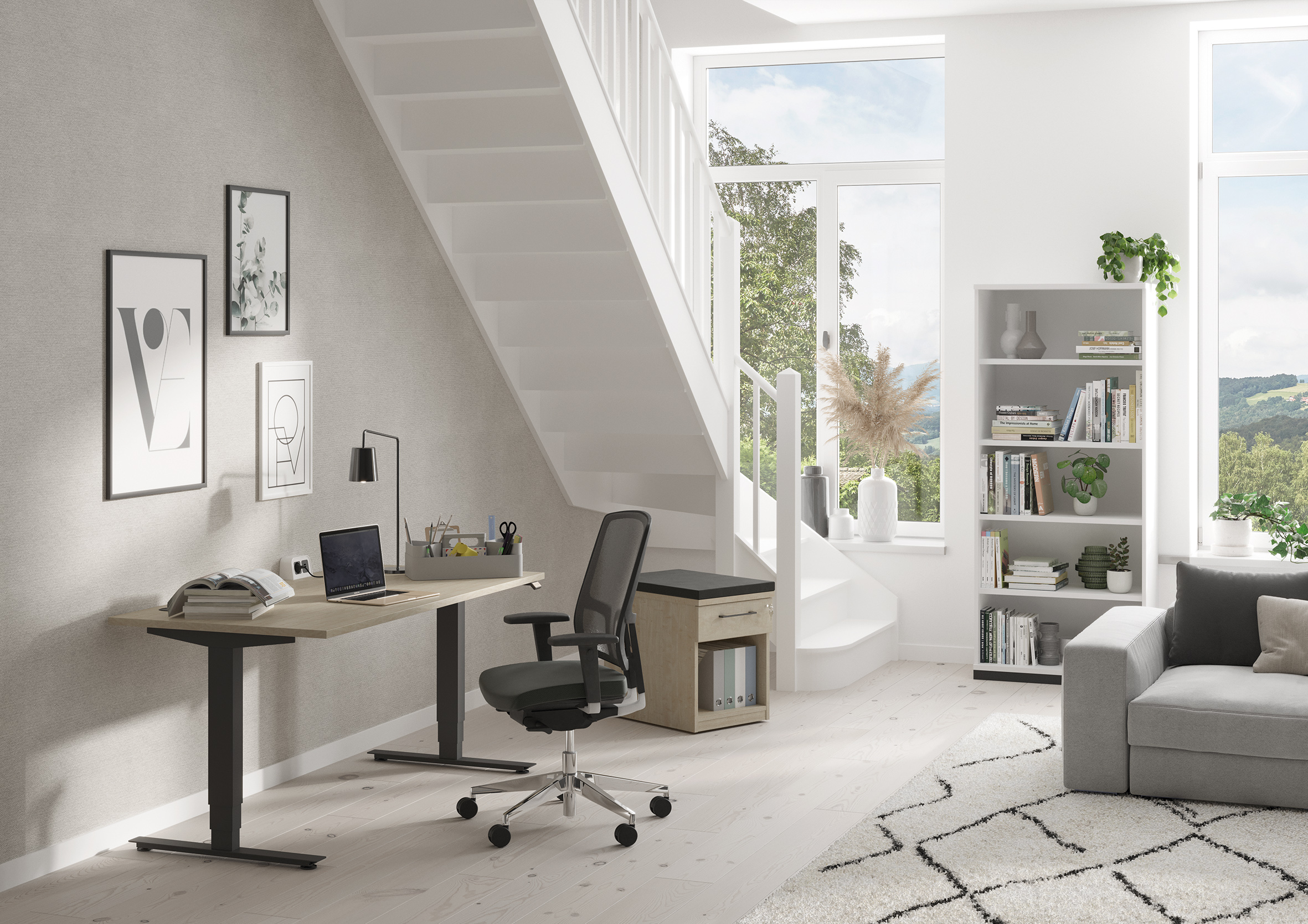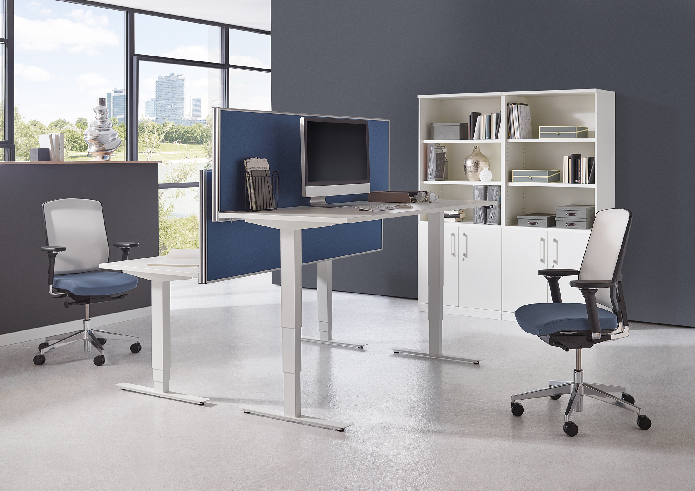 Klare Linien und perfekte Technik – der Tisch überzeugt durch Design und Funktionalität. Der Mensch ist nicht nur zum Sitzen geschaffen. Die Belastungen durch zu langes Sitzen und Bewegungsmangel führen zu dauerhaften Fehlbeanspruchungen des Muskel-Skelett-Systems und gesundheitlichen Beeinträchtigungen. Dynamisches Arbeiten mit häufigen Wechseln von Steh- und Sitzpositionen fördert die Gesundheit und wirkt sich dabei positiv auf Konzentration und Motivation aus. Klares Design und eine optimale Technik bringen Schwung ins Büro.